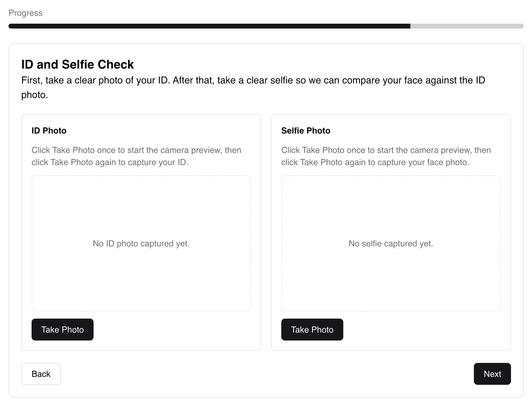 - Attire: You must be fully dressed. No hats, hoodies, headphones, watches, or smart glasses.
