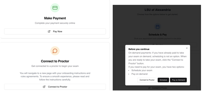 - Please note: If you pay on demand, you will not be able to schedule your exam.