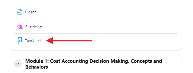 1. Go to the TurnItIn Assignment area in your Moodle course. Click on the assignment to open it.