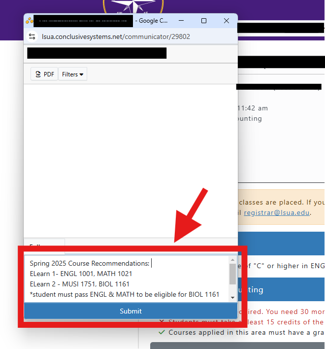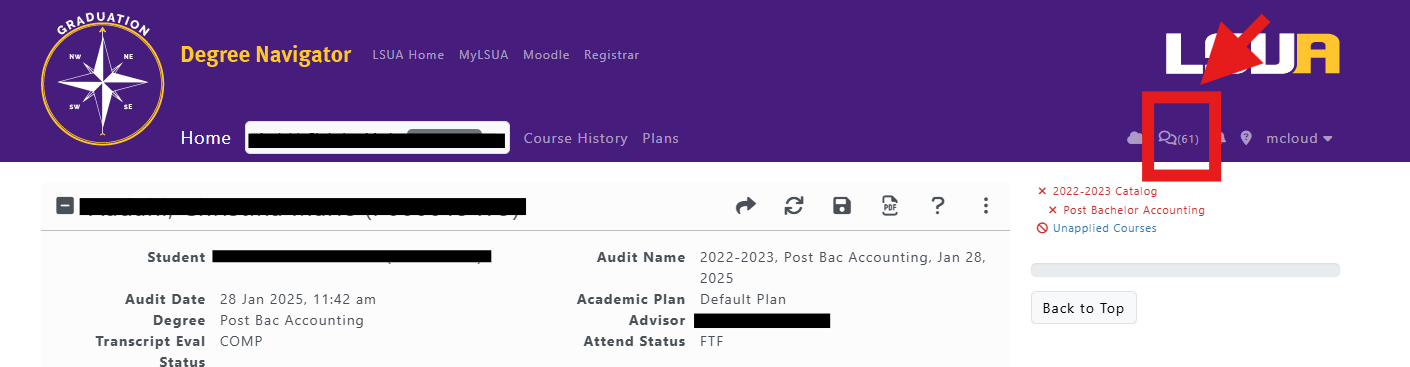 (If you are new to using Degree Navigator and need a quick tutorial please email Michelle Ducote at mcloud@lsua.edu)