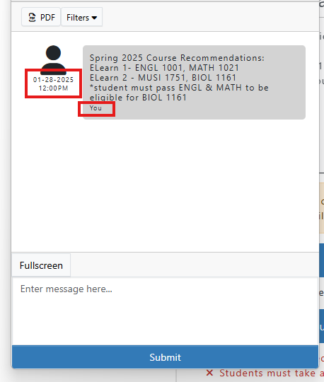5. IT IS IMPORTANT TO STATE SEMESTER & YEAR AND WHAT INFORMATION YOU ARE TRYING TO COMMUNICATE WITH THE STUDENT (EX: SPRING 2025 - COURSE RECOMMENDATIONS). THESE NOTES ARE MEANT TO BE SIMPLE AND DIRECT.