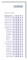 Yellow Boxes: The Table of contents – Editing Turned On- will look and function the same as the current Moodle version