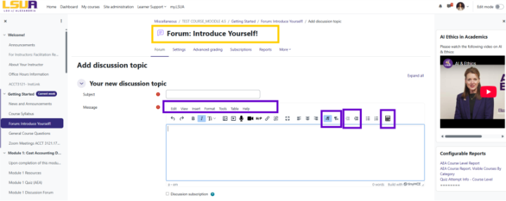 The overall look of the forum will be tidier and more modern, with a focus on readability and ease of navigation. Moodle's ongoing commitment to accessibility means that the design has been optimized for users of all abilities. Multiple tool items are now available to customize Discussion responses such as, indention, font options, checking word count and accessibility and much more.