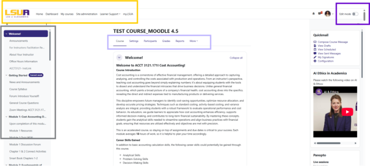 If you would like to see more regarding the Moodle 4.5 upgrade please reach out to Michelle Ducote, mcloud@lsua.edu or Ashley Robinson, ashleyr@lsua.edu.
