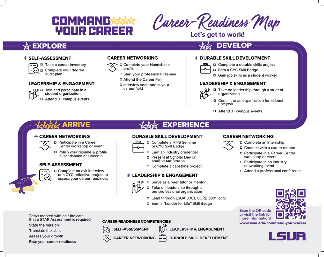 Earn all four stars and you will become a special Four-Star Graduate, which says to your future employers that you “commanded” your career during your time at LSUA.